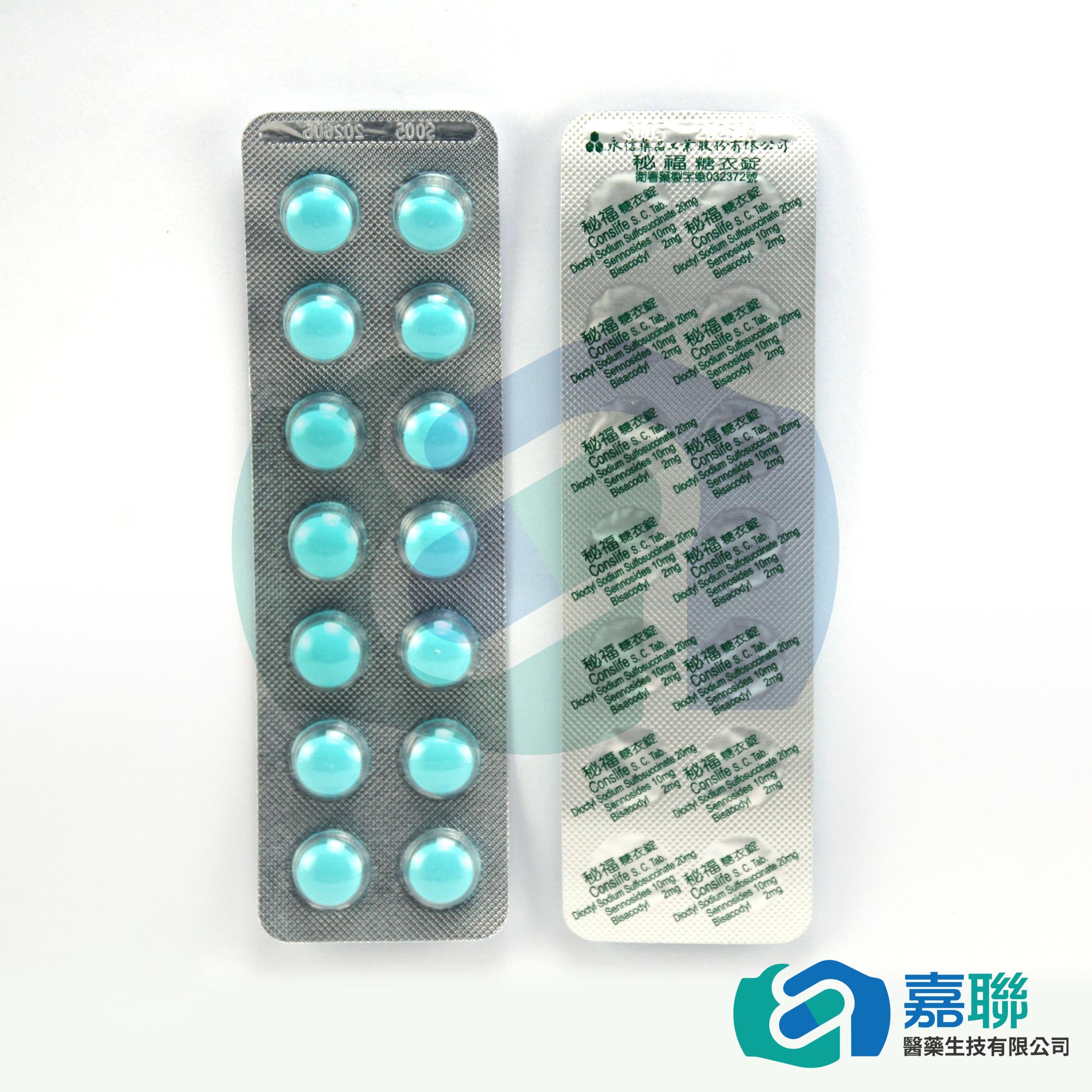 成份 : Dioctyl Sodium Sulfosuccinate (=Aerosol Ot) 20mg