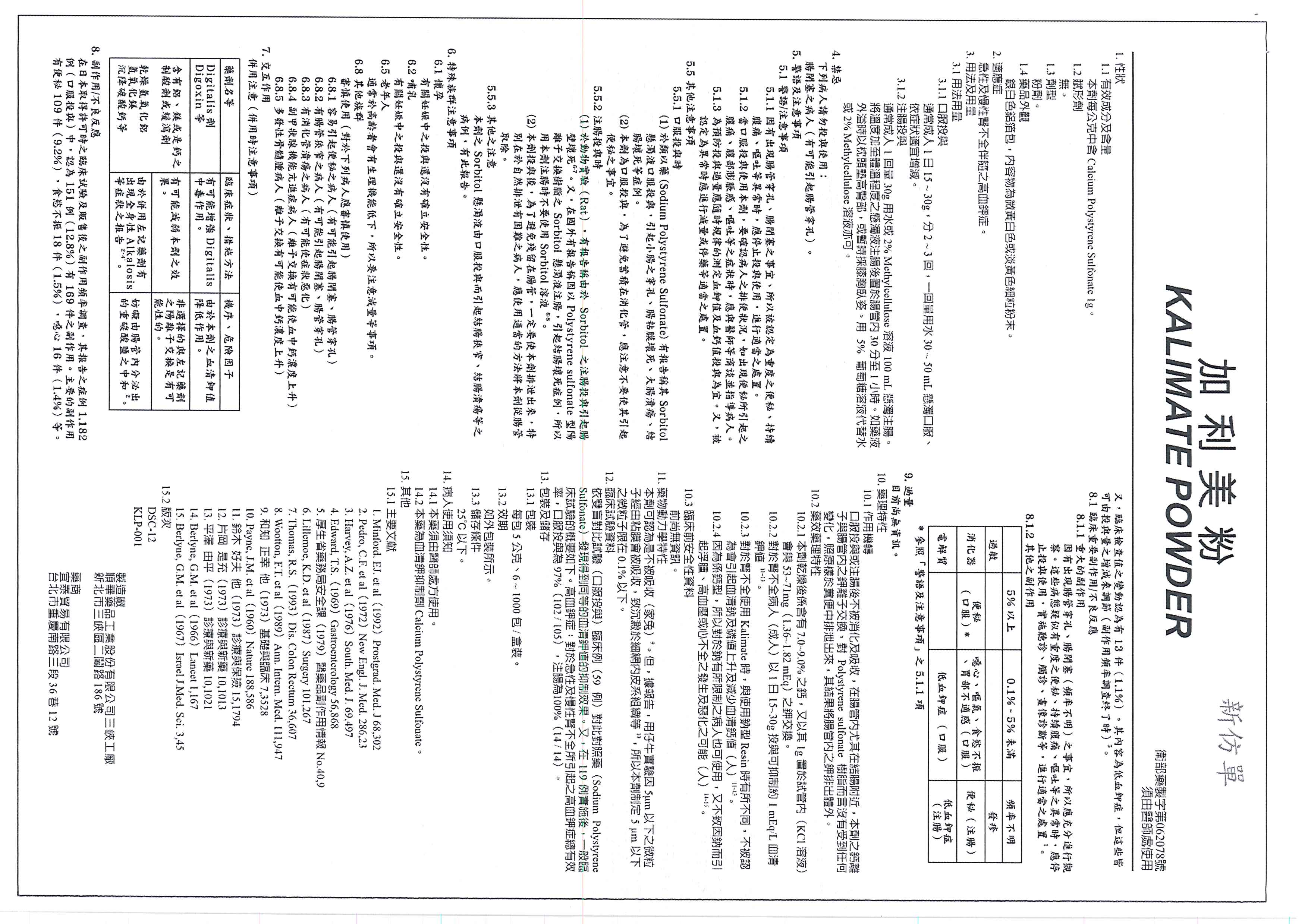 醫藥資訊:【外盒、仿單、健保碼變更】加利美粉 (Kalimate Powder 5g)