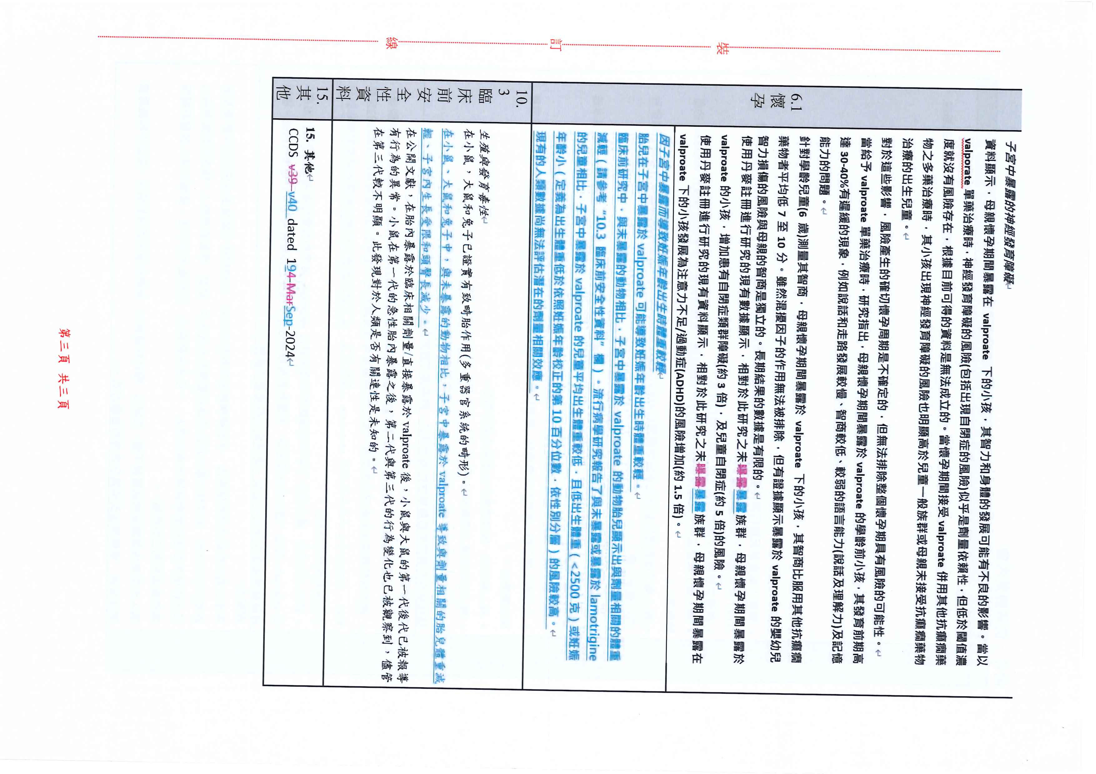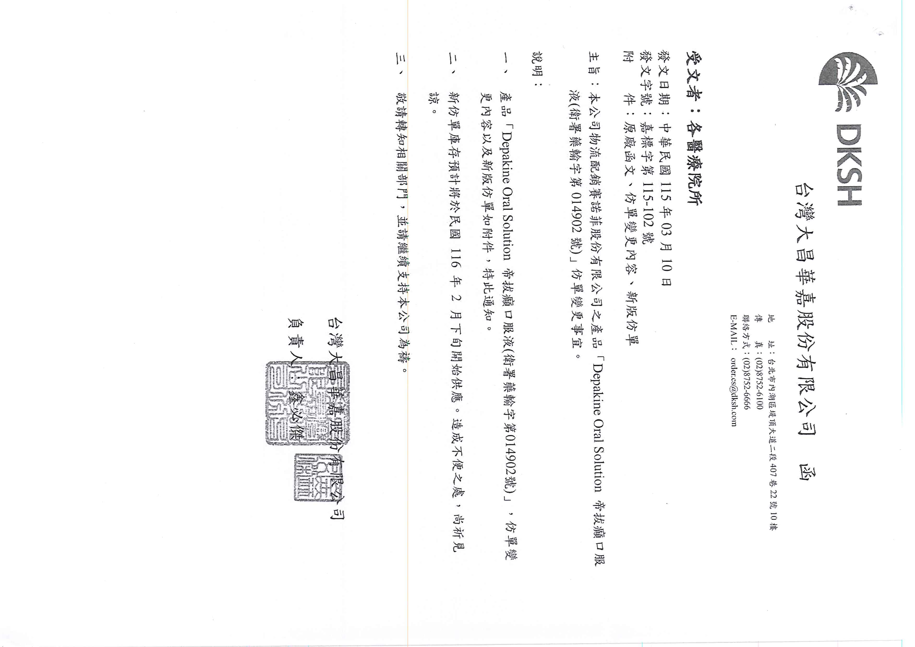 帝拔癲口服液 (Depakine Oral Solution 40ml)-仿單變更事宜,請參照如下說明段: