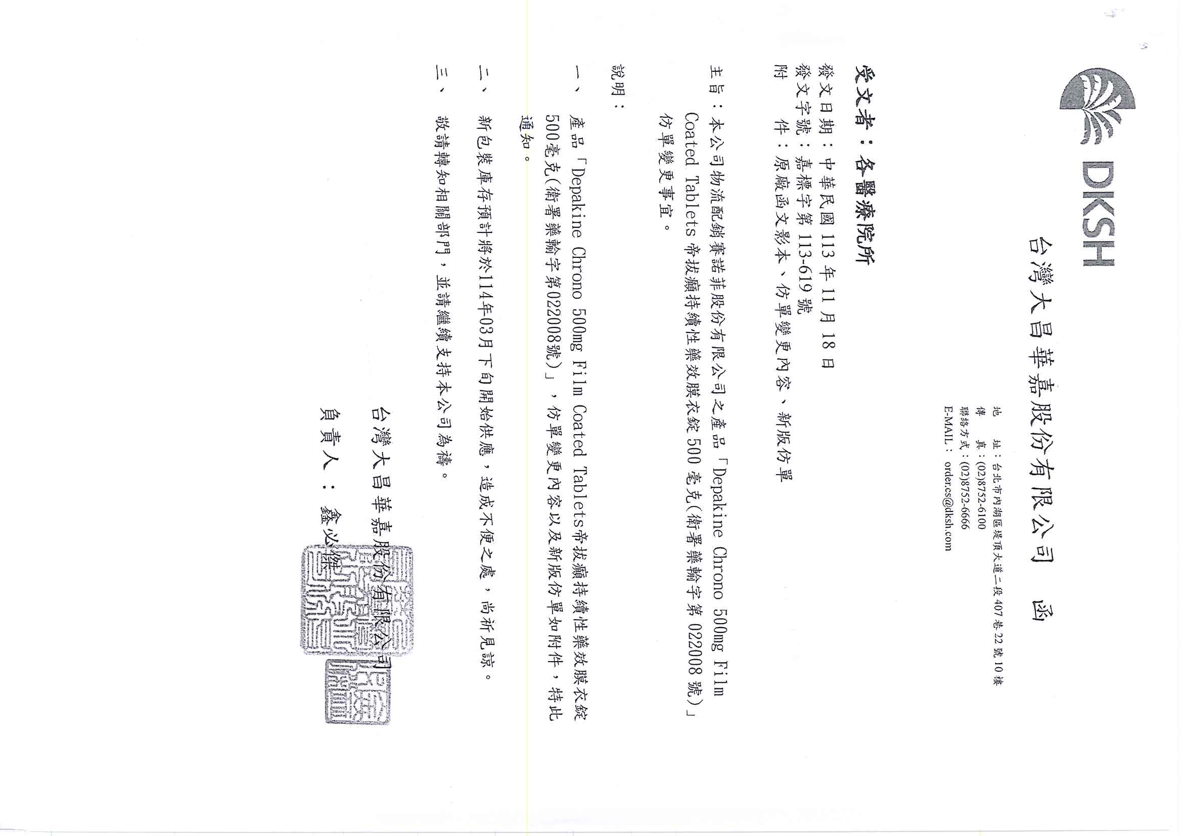 醫藥資訊:【仿單變更事宜】帝拔癲持續性藥效膜衣錠DEPAKINE 500mg