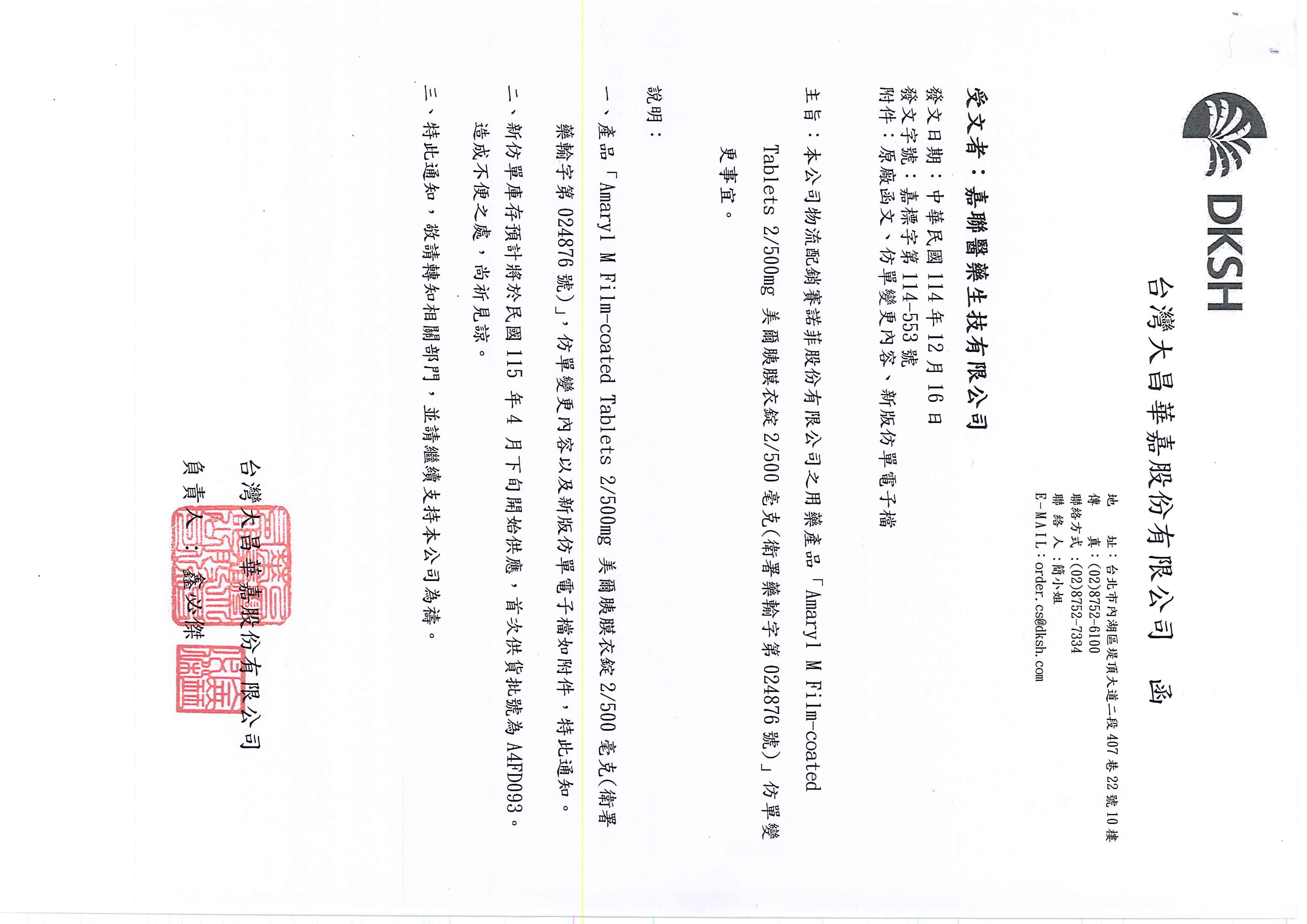 醫藥資訊:【仿單變更】美爾胰膜衣錠2/500毫克(Amaryl M Film-Coated Tablets 2/500mg)