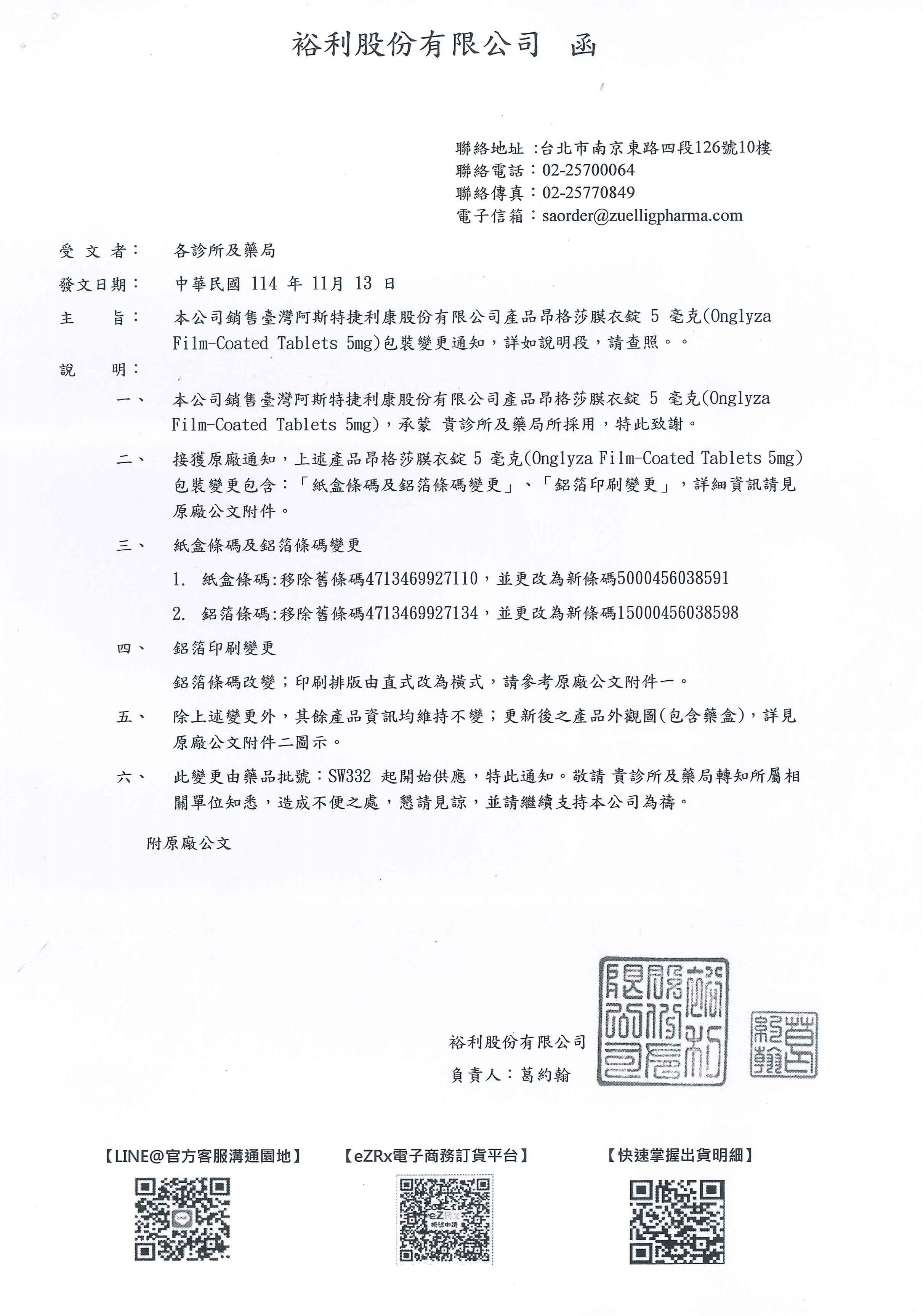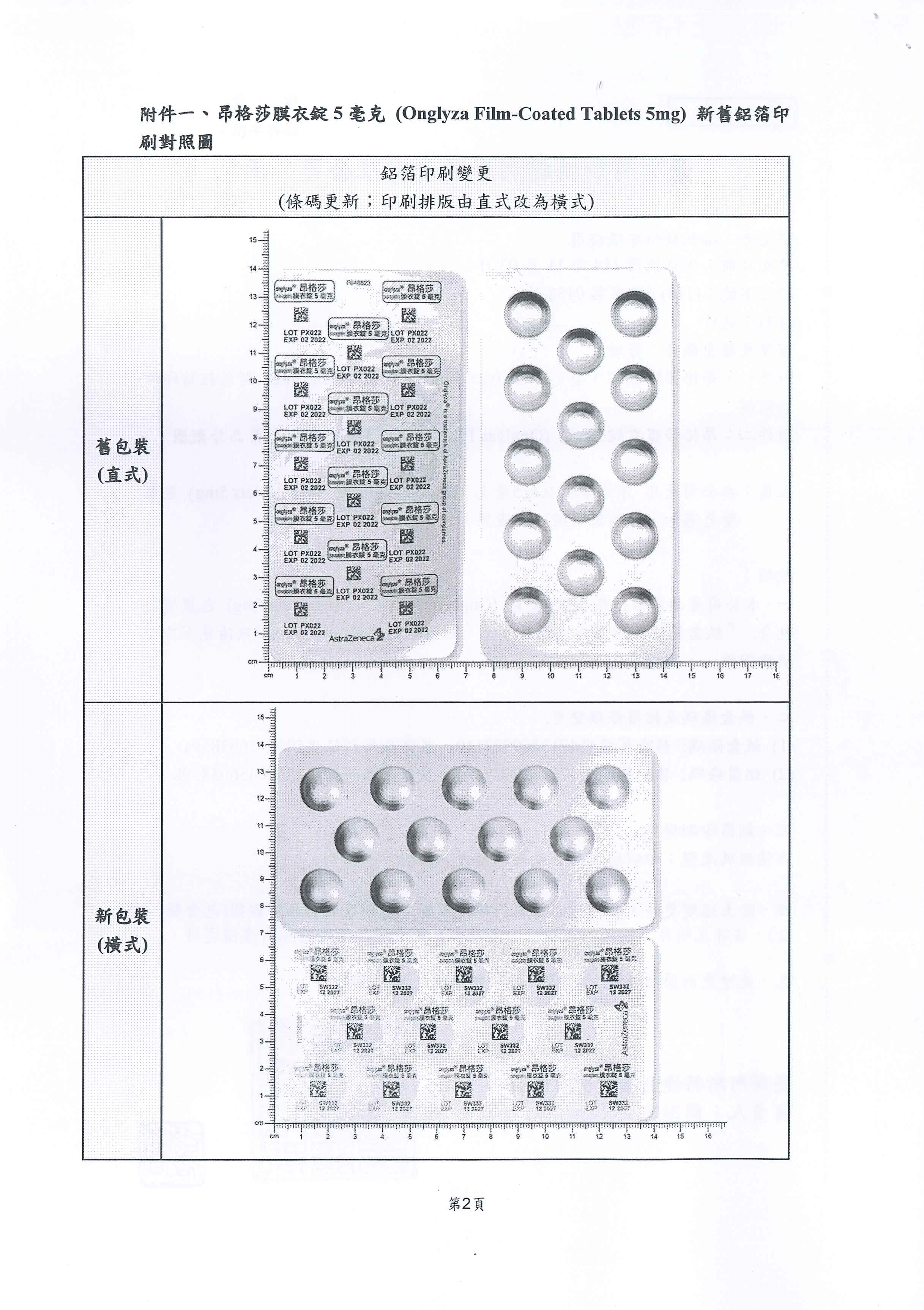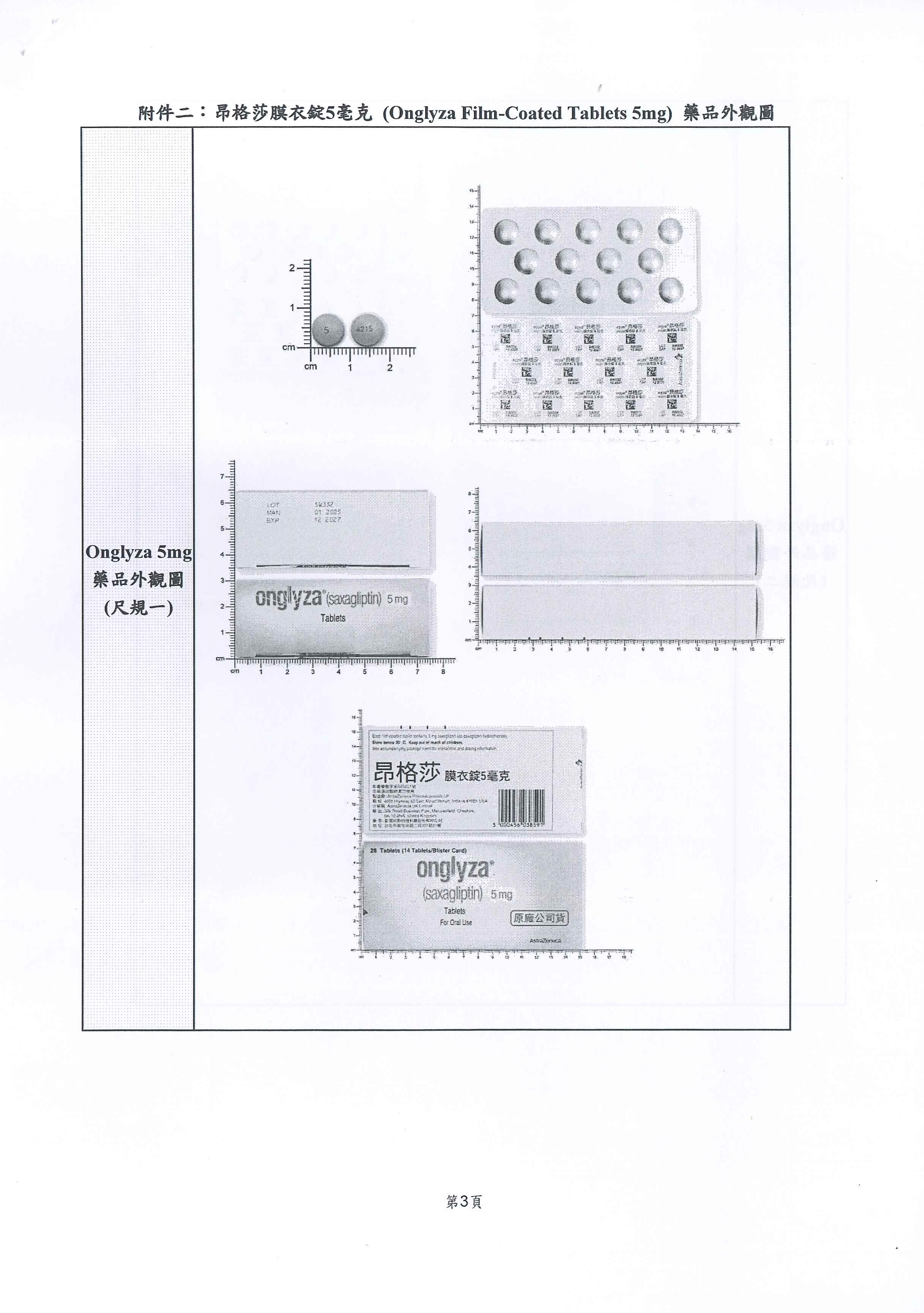醫藥資訊:【包裝變更】昂格莎膜衣錠5毫克(Onglyza Film-Coated Tablets 5mg)
