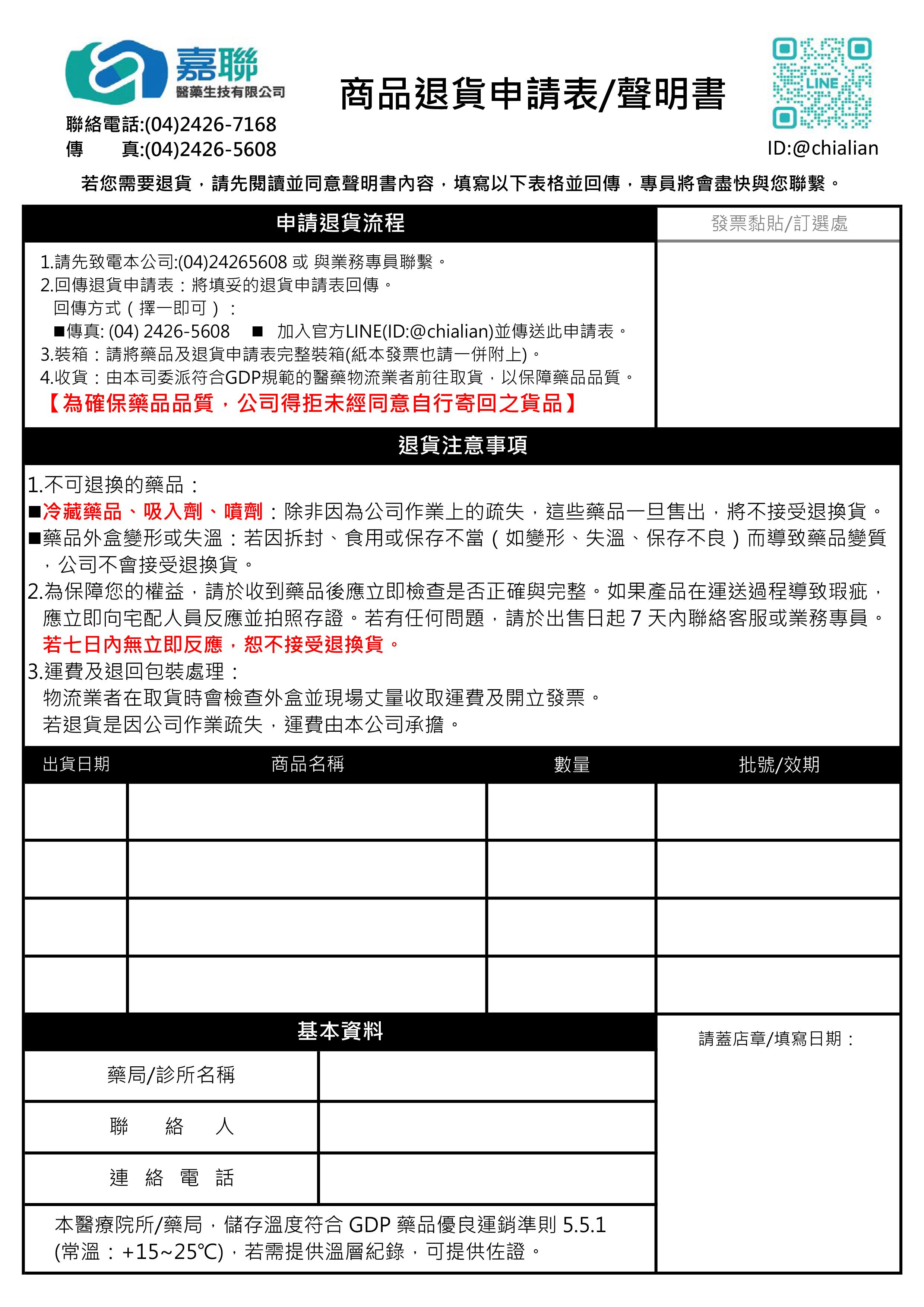 | 2025/10/31 【以嘉聯醫藥收到日計算,逾時不候】
