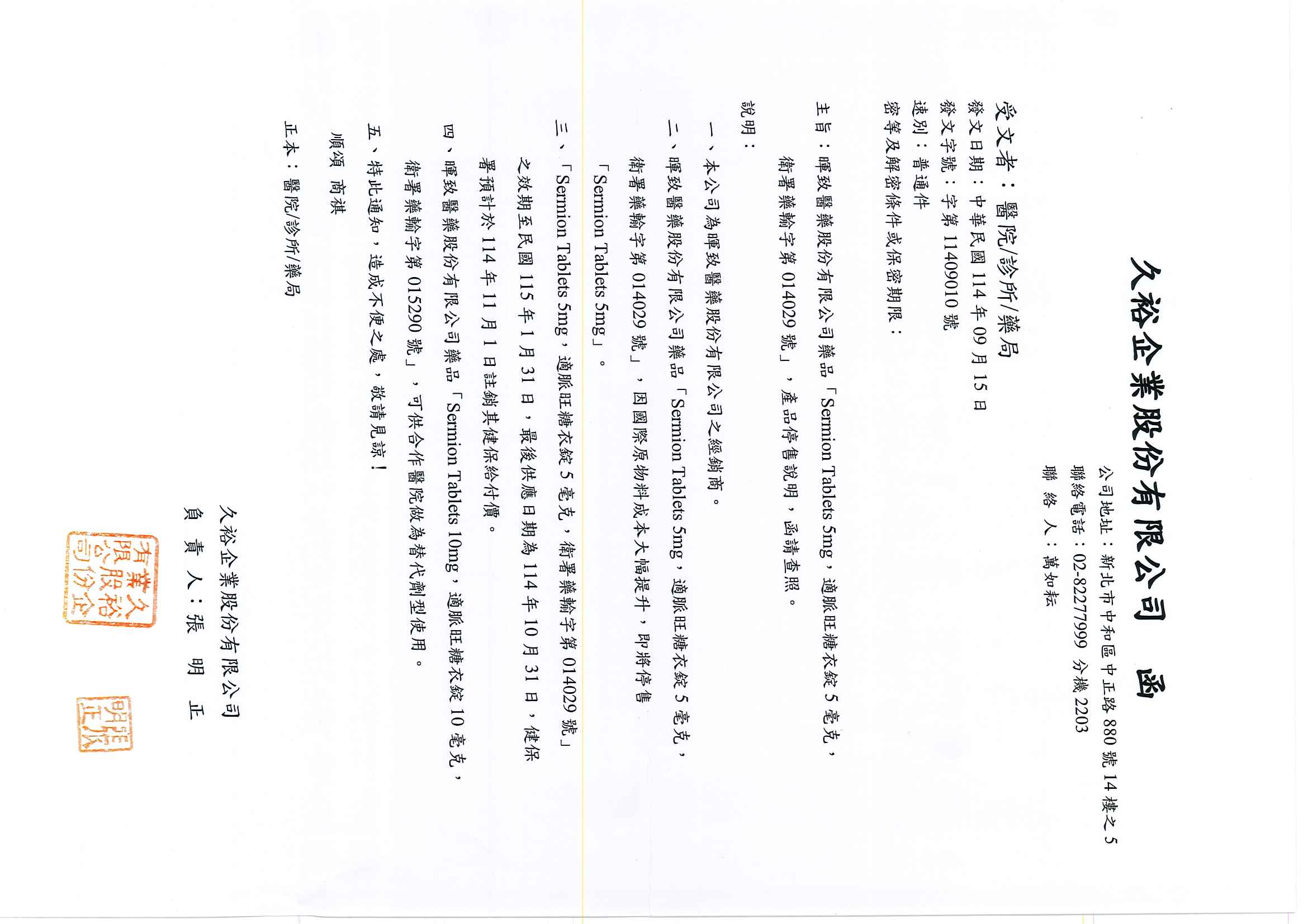 醫藥資訊:【停止供貨】適脈旺糖衣錠5毫克 ( Sermion Tablets 5mg)