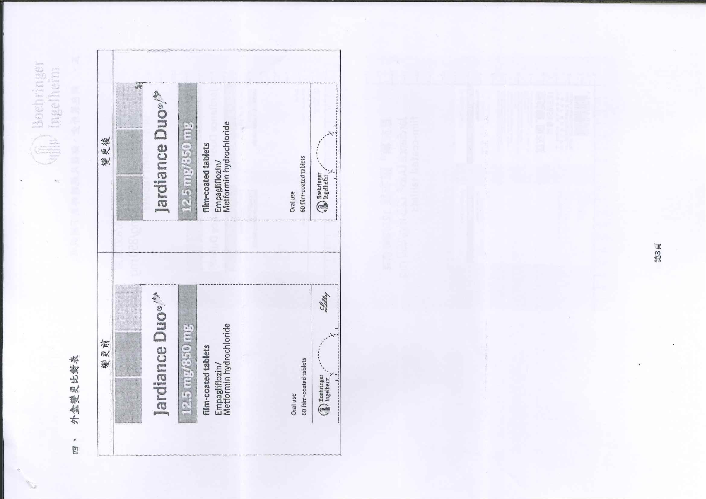 醫藥資訊:【仿單、鋁箔、外盒變更】恩美糖膜衣錠 (Jardiance Duo 12.5/850mg)