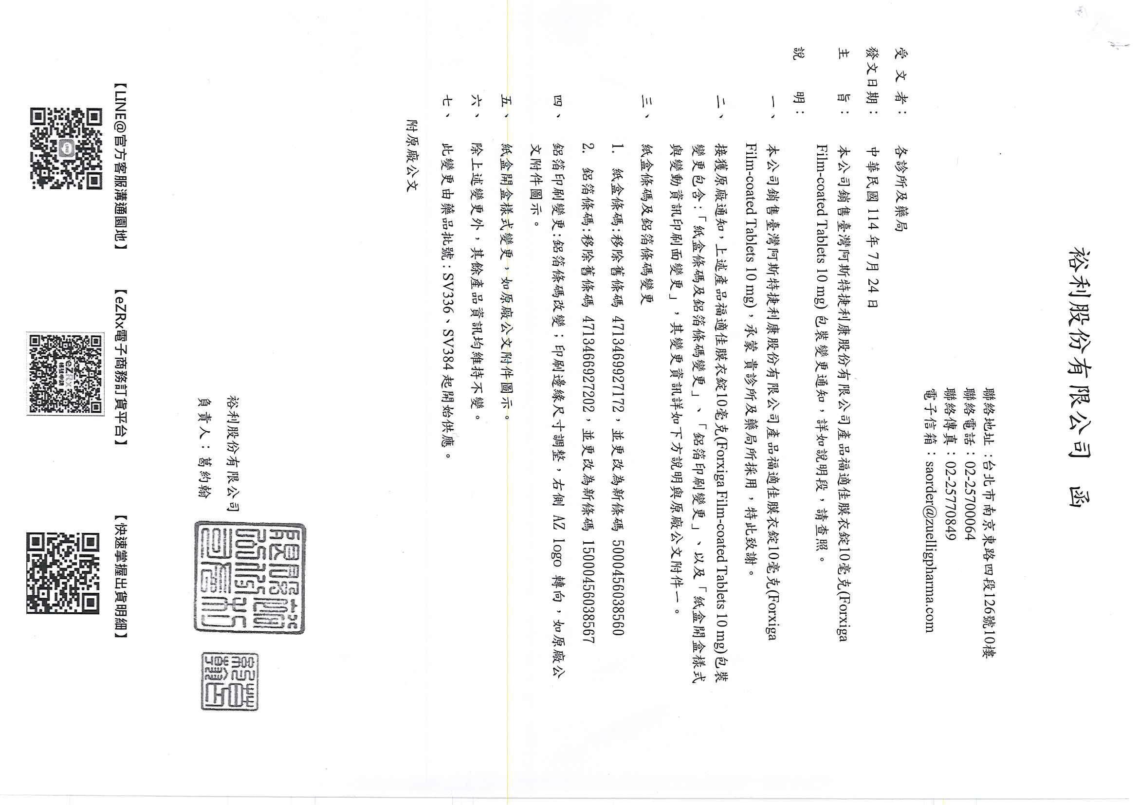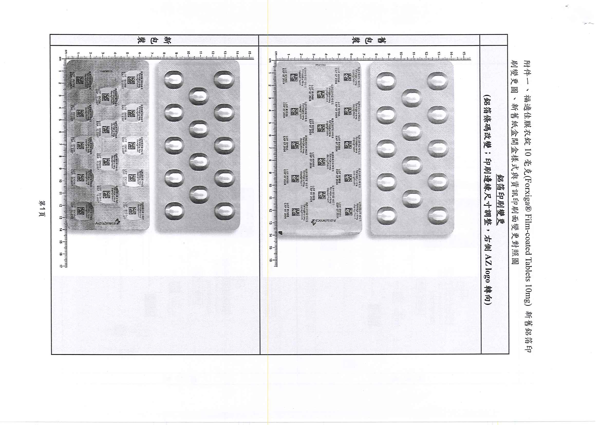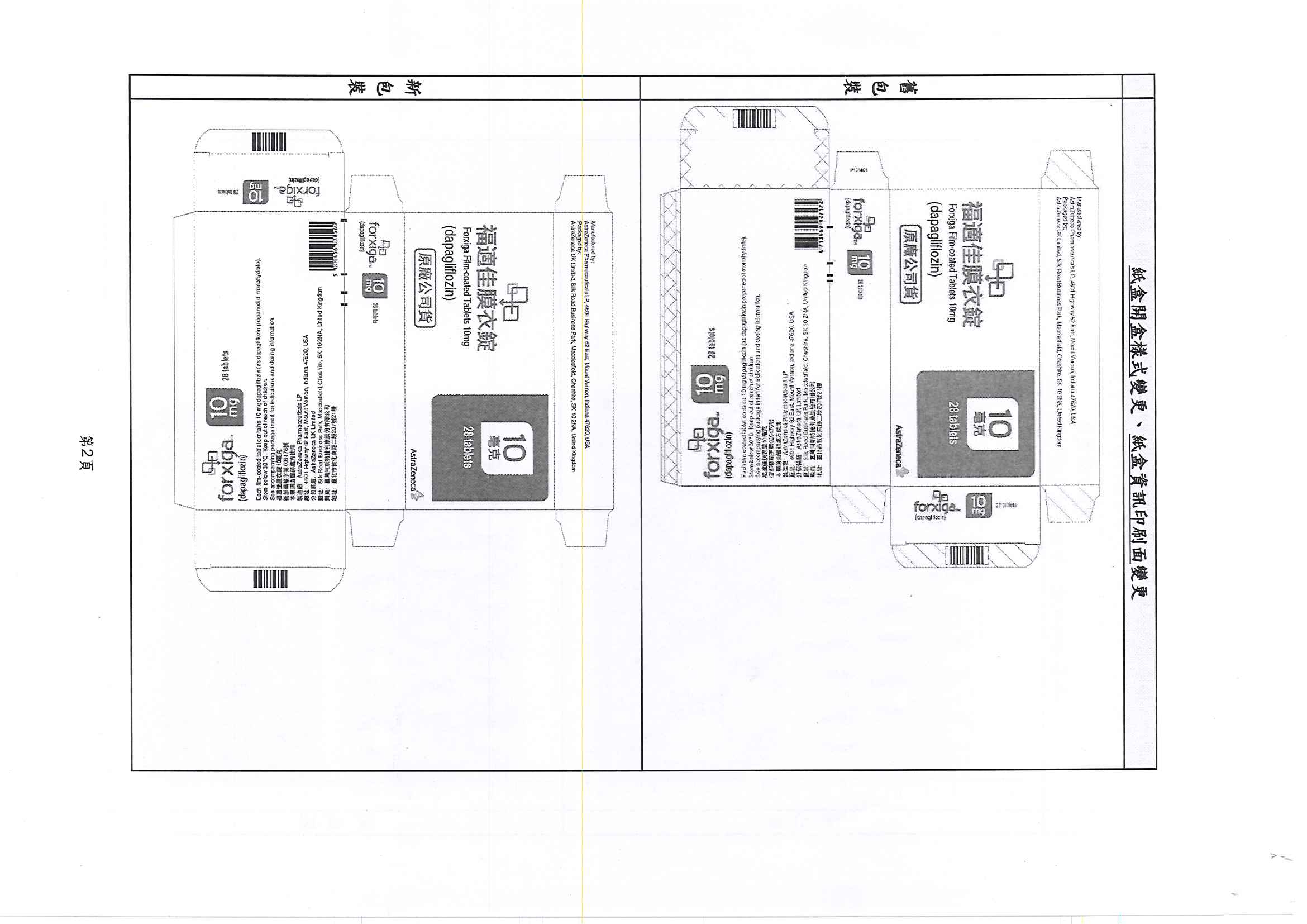福適佳膜衣錠10毫克(Forxiga Film-Coated Tablets 10mg) 包裝變更通知,詳如說明段,請查照。