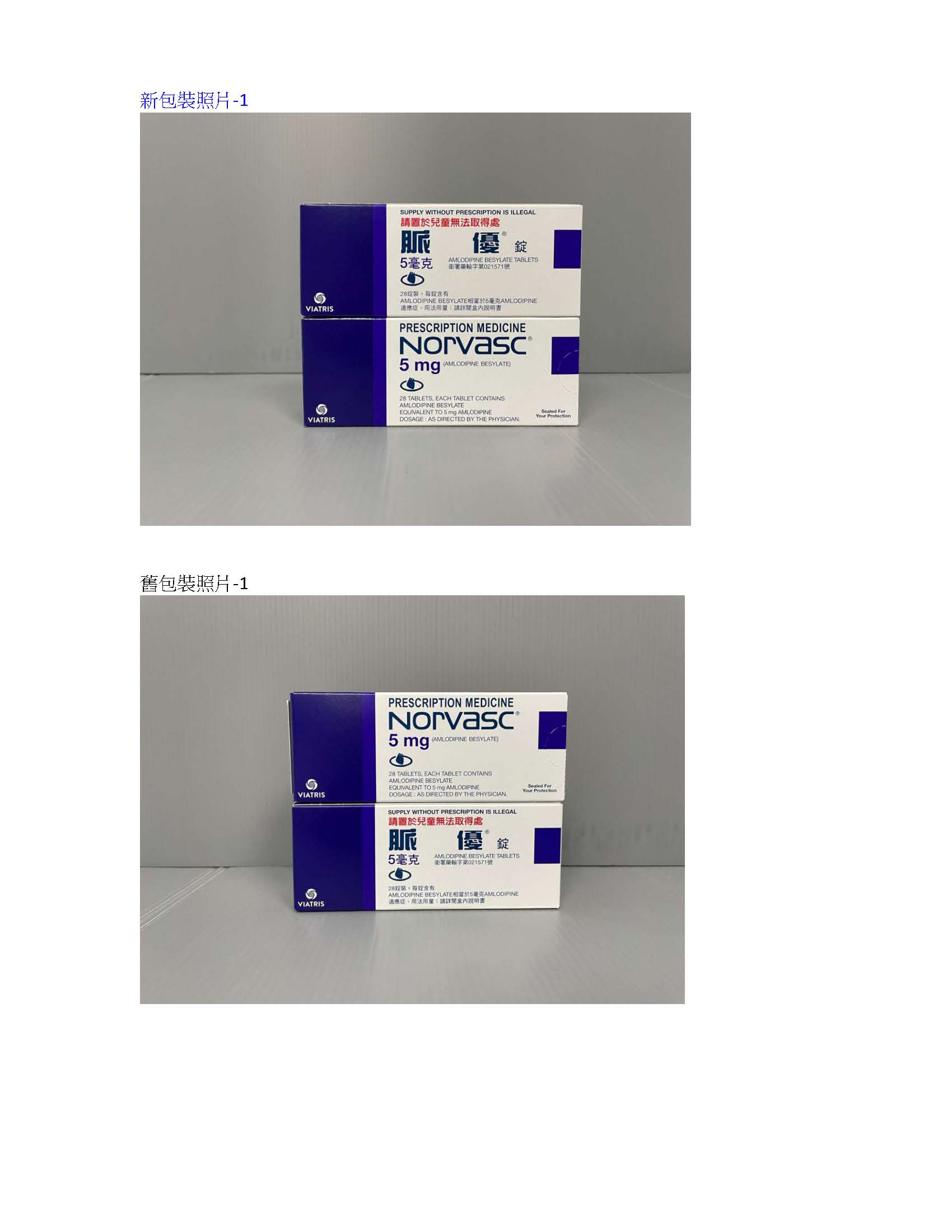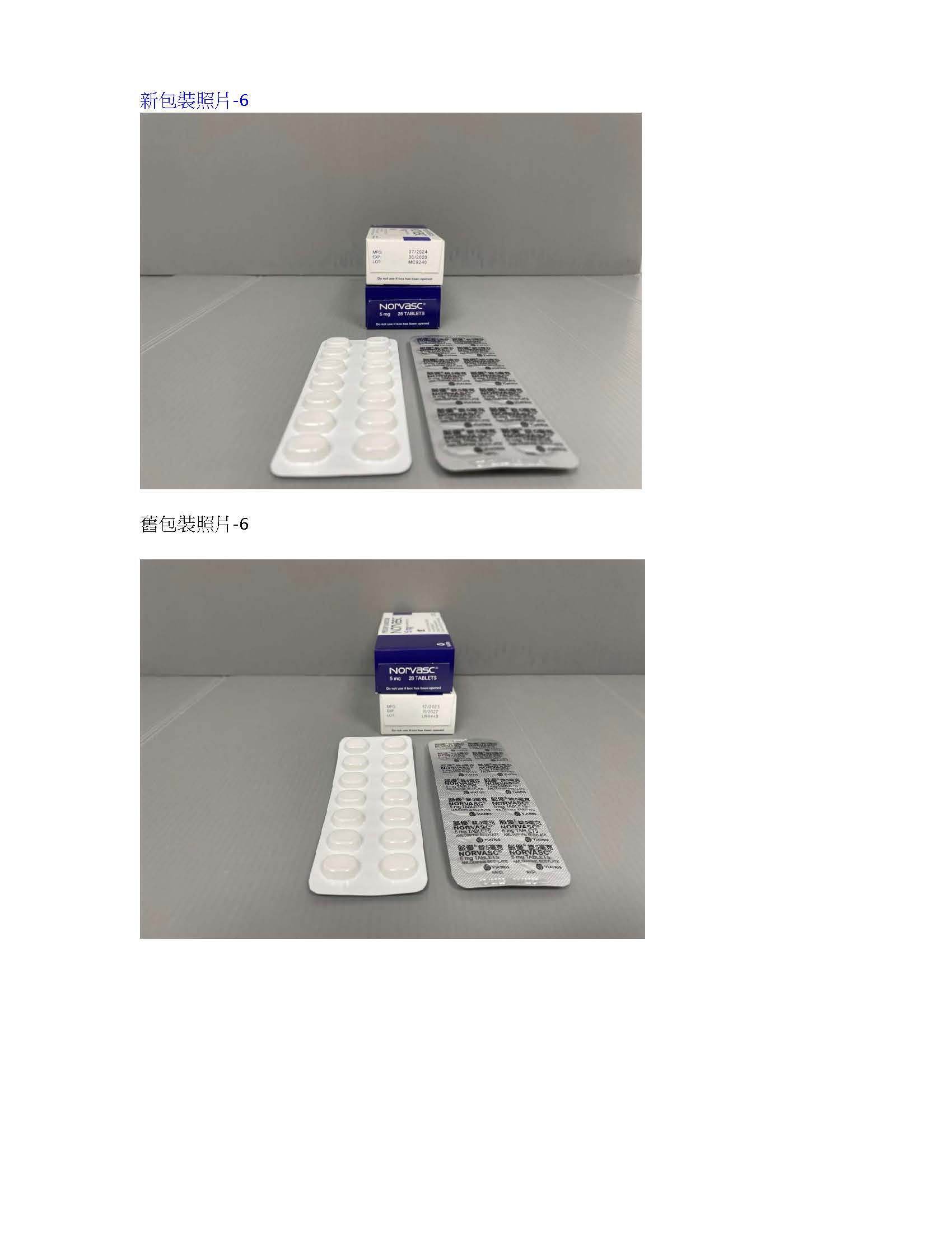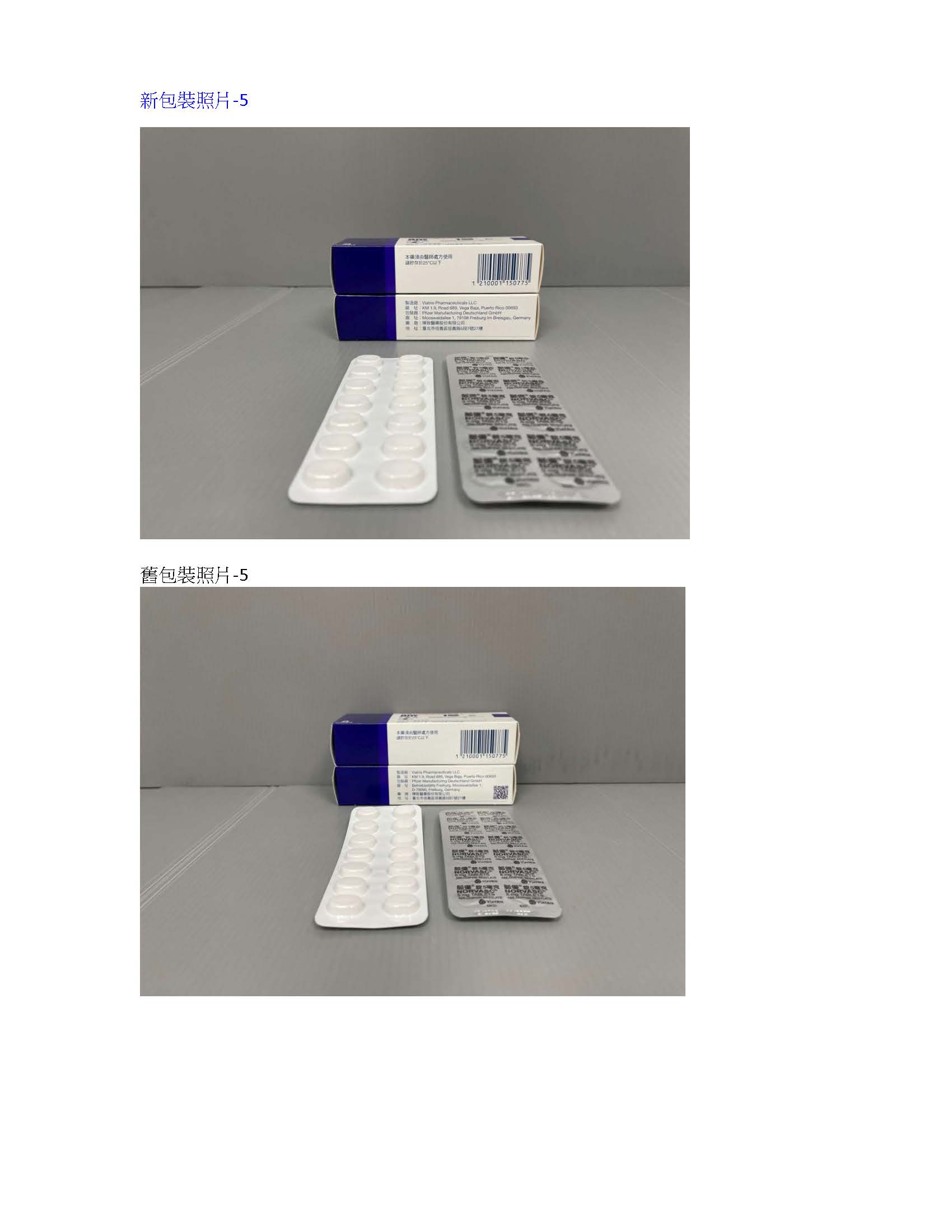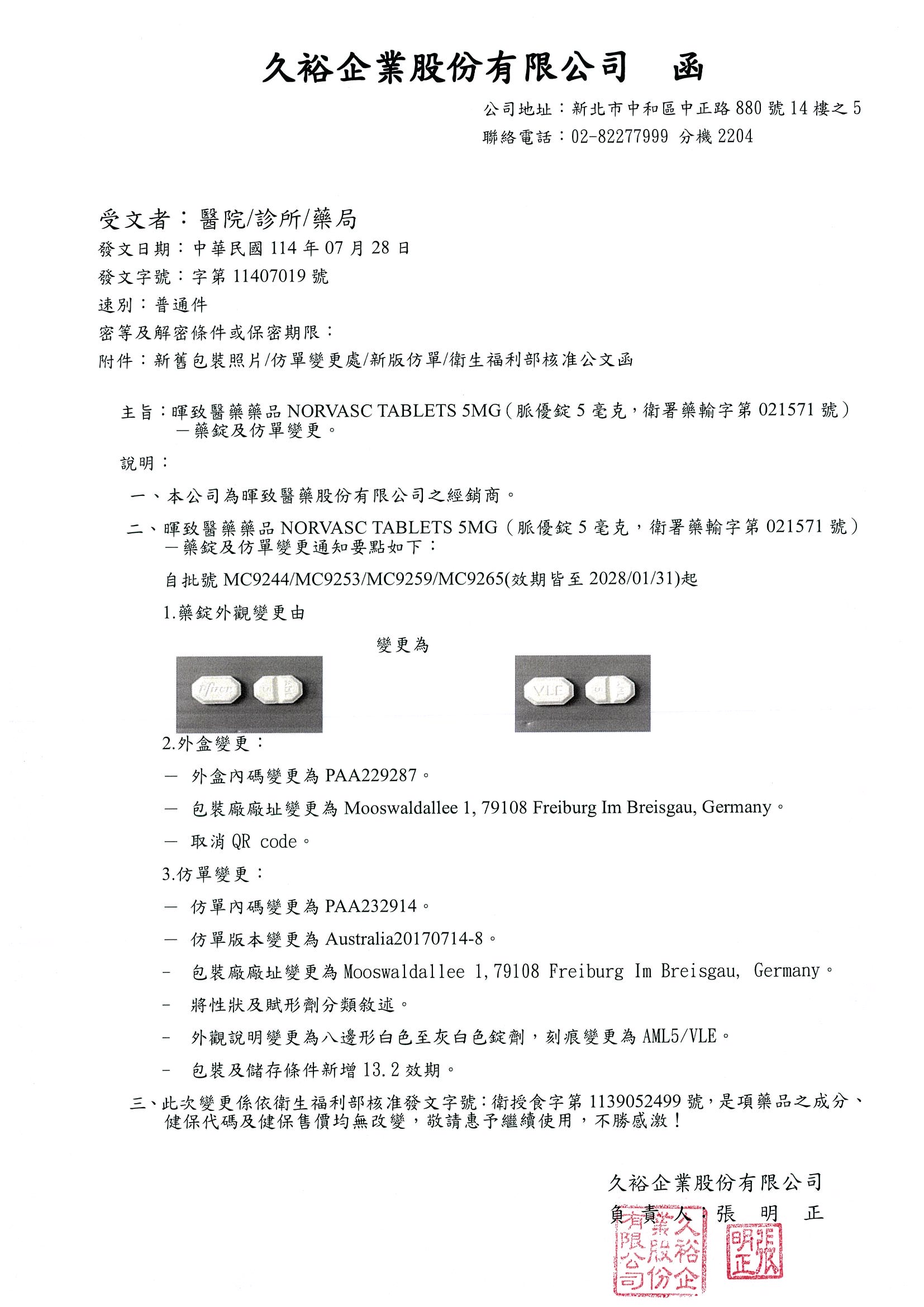 脈優錠5毫克 (Norvasc Tablets 5mg)-衛署藥輸字第021571號—藥錠及仿單變更。