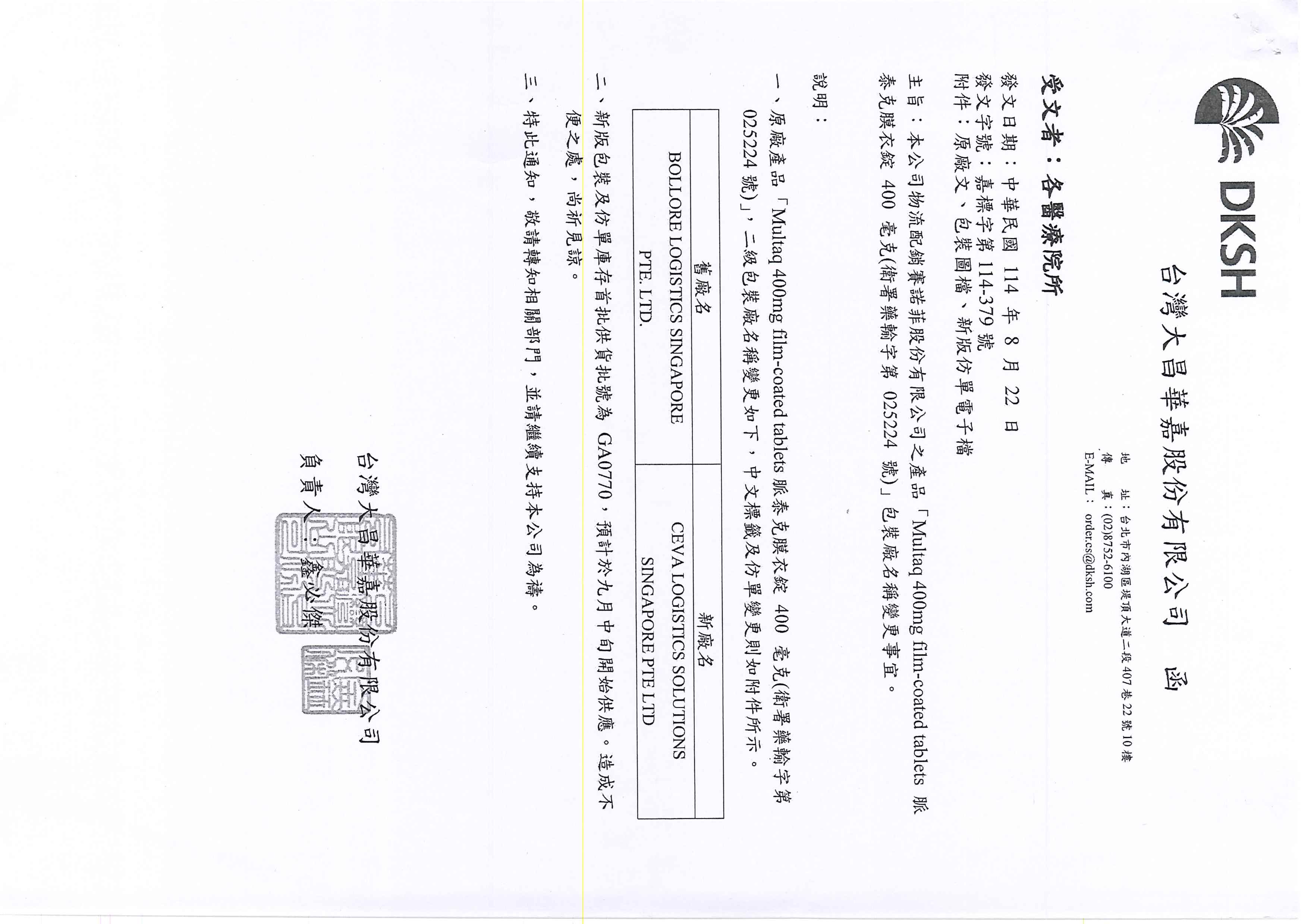 包裝廠名稱變更事宜如下: