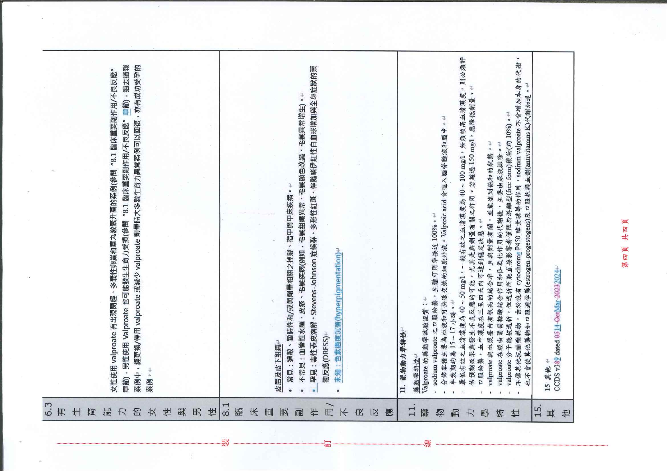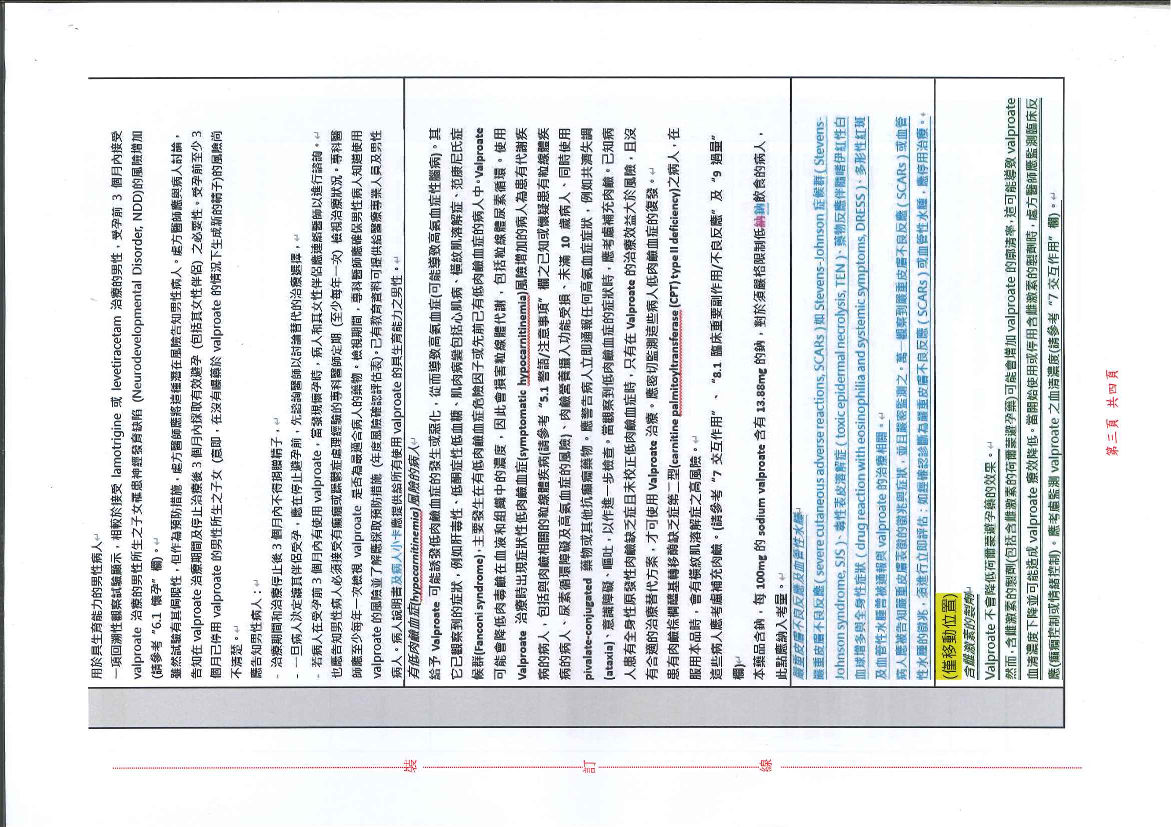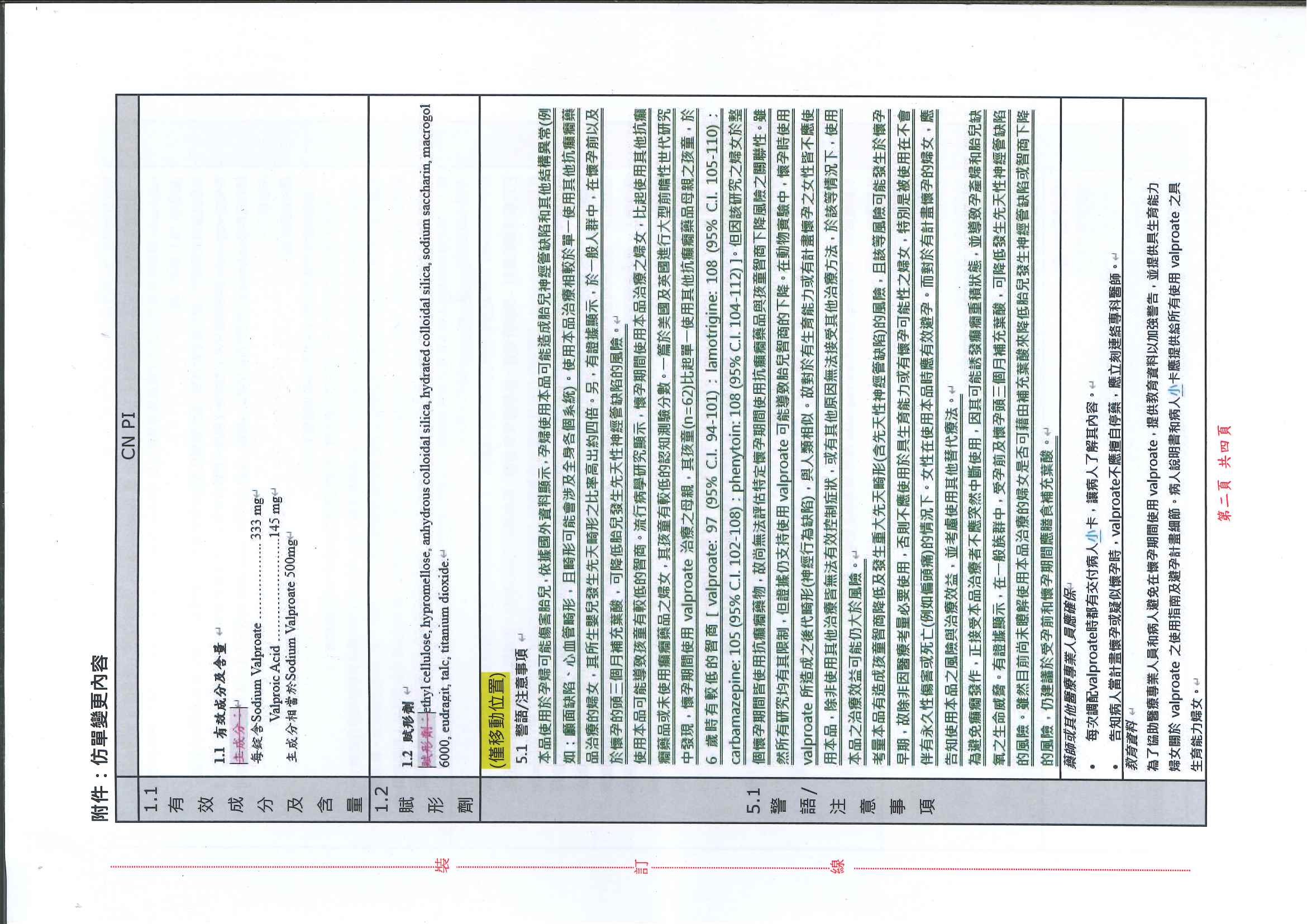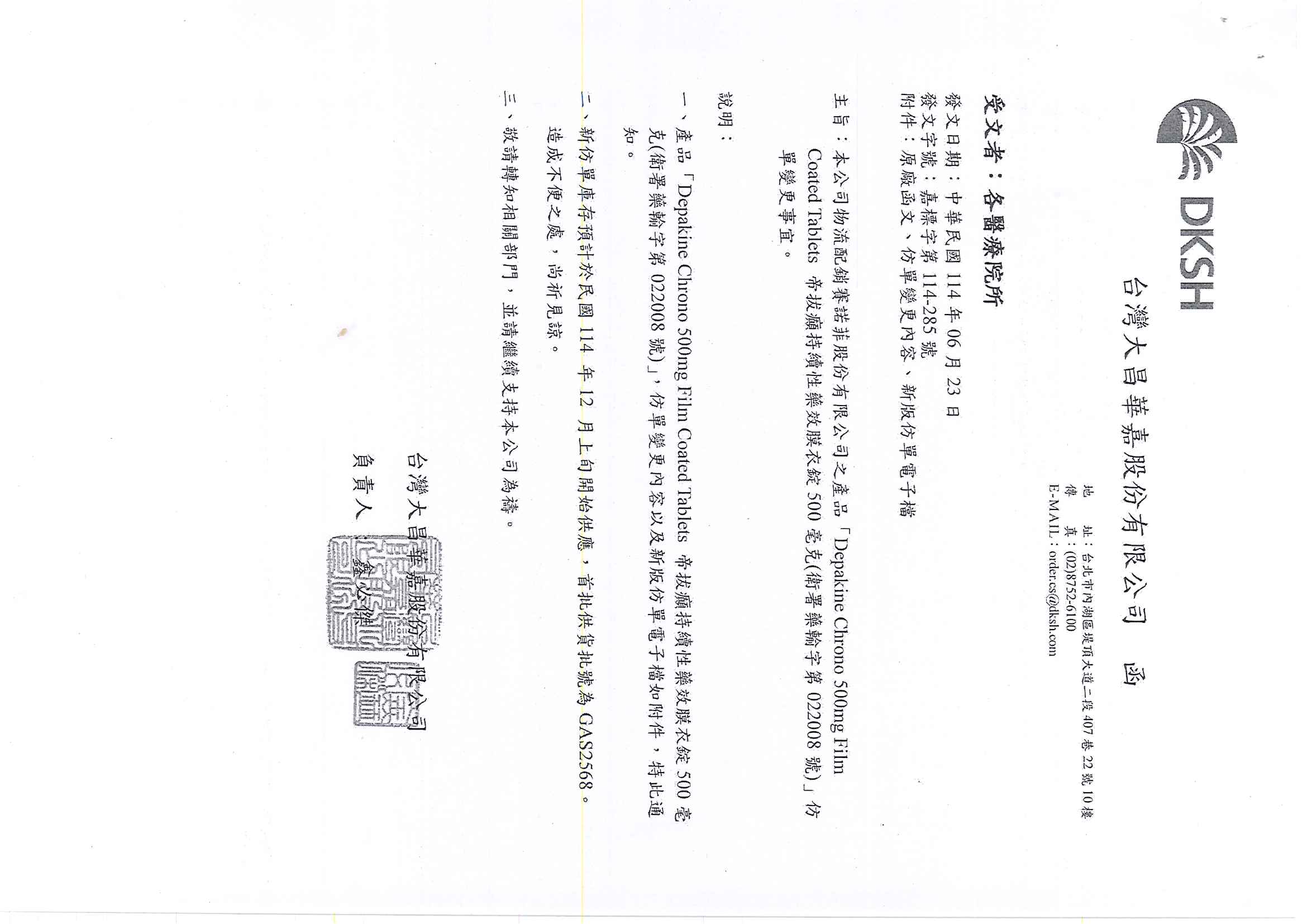 帝拔癲持續性藥效膜衣錠500毫克 Depakine Chrono 500Mg Film Coated Tablets(衛署藥輸字第022008號)仿單變更事宜如下,請查照。